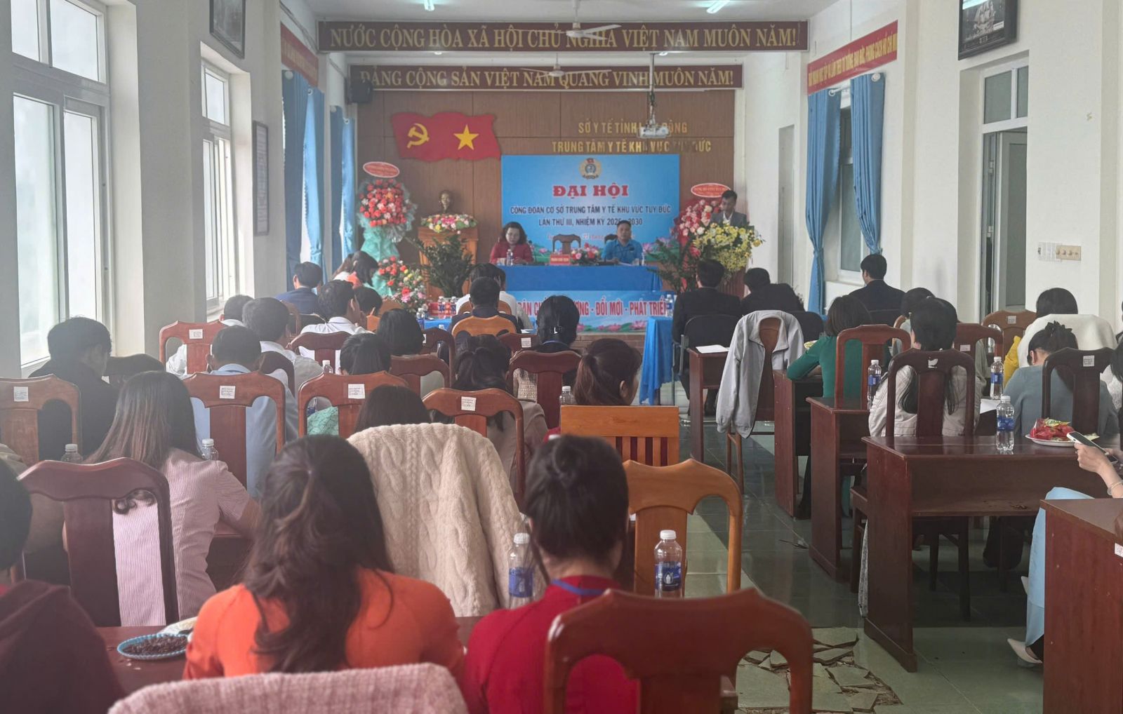 Ngày 27/11/2025, Công đoàn cơ sở Trung tâm Y tế khu vực Tuy Đức tổ chức Đại hội lần thứ III, nhiệm kỳ 2025-2030. Đại hội có sự tham dự của các đồng chí: Đoàn Văn Sự - Ủy viên Ban chấp hành Tổng Liên đoàn, Phó Chủ tịch liên đoàn lao động tỉnh, Trưởng ban Công tác Công đoàn tỉnh; Phan Thanh Thái - Phó Chủ tịch liên đoàn lao động tỉnh, Chủ nhiệm Uỷ ban kiểm tra liên đoàn lao động tỉnh; Nguyễn Quang Hùng - Ủy viên Ban chấp hành, Phó Ban Công tác Công đoàn tỉnh và Nguyễn Thanh Toàn - Tổ trưởng phụ trách địa bàn Đắk Nông về tham dự và chỉ đạo. Đại hội quy tụ 64 đại biểu đại diện cho 120 đoàn viên của đơn vị.