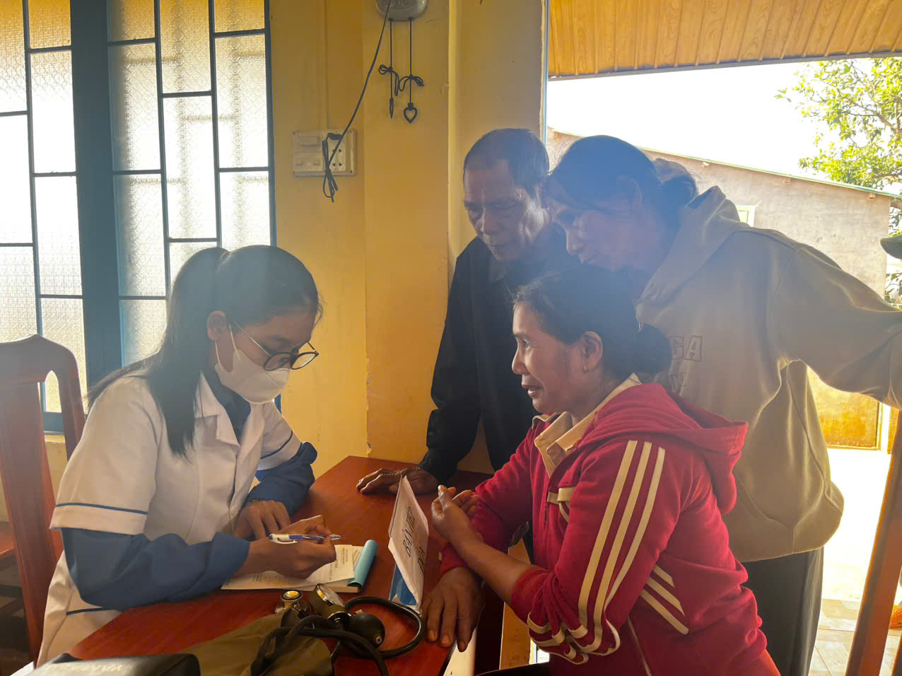 Tại đây, các thành viên Hội Thầy thuốc trẻ đến từ Bệnh viện đa khoa Đắk Nông và Trung tâm Kiểm soát bệnh tật (cơ sở 2) đã khám bệnh, tư vấn và cấp phát thuốc miễn phí đồng thời tuyên truyền hướng dẫn bà con các biện pháp vệ sinh phòng dịch và chăm sóc sức khoẻ chủ động.
