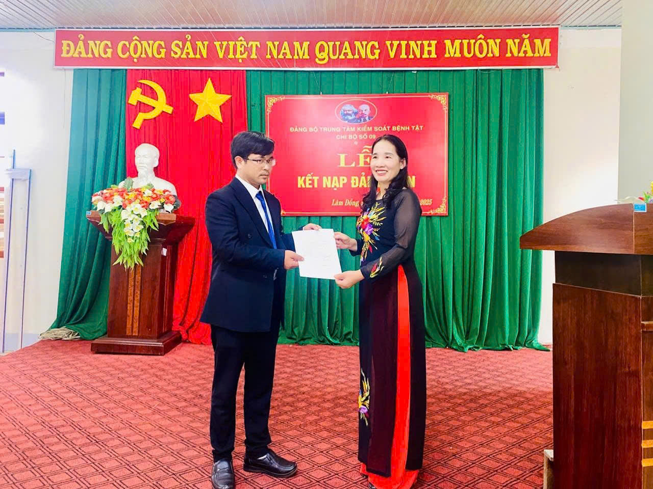 Buổi lễ kết thúc trong không khí trang trọng, thể hiện sự quan tâm của Chi bộ đối với công tác phát triển đảng viên mới, góp phần xây dựng Đảng bộ Trung tâm Kiểm soát bệnh tật ngày càng vững mạnh.