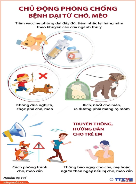 2. Khi bị động vật cắn phải rửa ngay vết thương và đến ngay cơ sở y tế để được khám và tư vấn tiêm vắc xin phòng Dại.