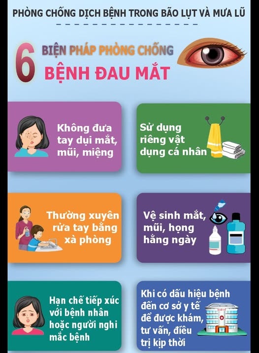 Sau lũ lụt, dịch đau mắt đỏ (viêm kết mạc) dễ bùng phát do môi trường ẩm ướt, ô nhiễm: Nước lũ cuốn theo rác thải, bụi bẩn, chất độc hại và các mầm bệnh, tạo môi trường thuận lợi cho vi khuẩn, virus (đặc biệt là Adenovirus) sinh sôi, phát triển mạnh.
