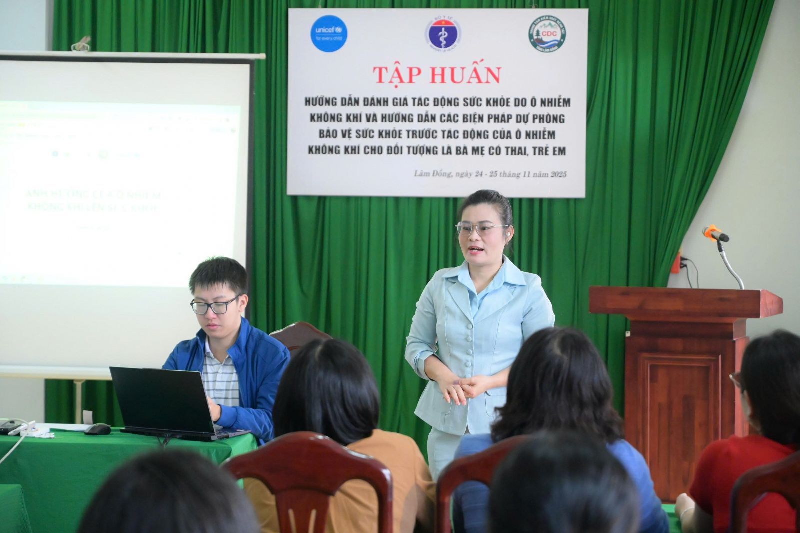 Trong 2 ngày ngày 24, 25/11/2025, Trung tâm Kiểm soát bệnh tật tổ chức tập huấn “Hướng dẫn đánh giá tác động sức khỏe do ô nhiễm không khí và các biện pháp dự phòng bảo vệ sức khỏe” cho nhóm đối tượng là phụ nữ mang thai và trẻ em. Hoạt động nằm trong khuôn khổ Dự án “Vì sự sống còn, phát triển trẻ em và môi trường (CSDE)” do UNICEF hỗ trợ kinh phí.