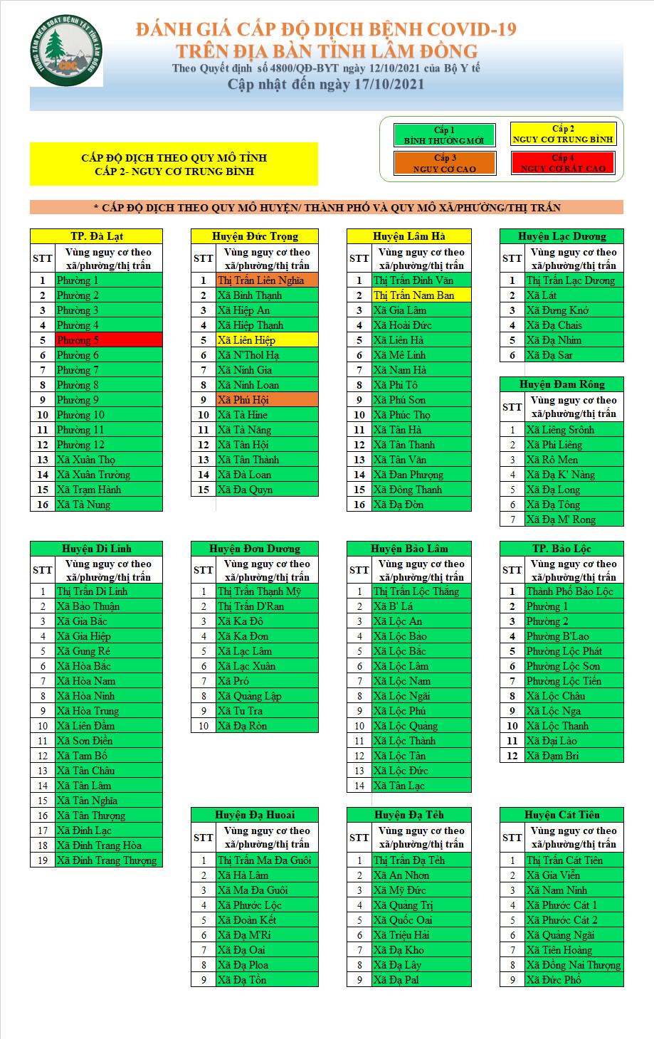 Đánh giá cấp độ dịch bệnh Covid-19 trên địa bàn tỉnh Lâm Đồng ngày 17/10/2021