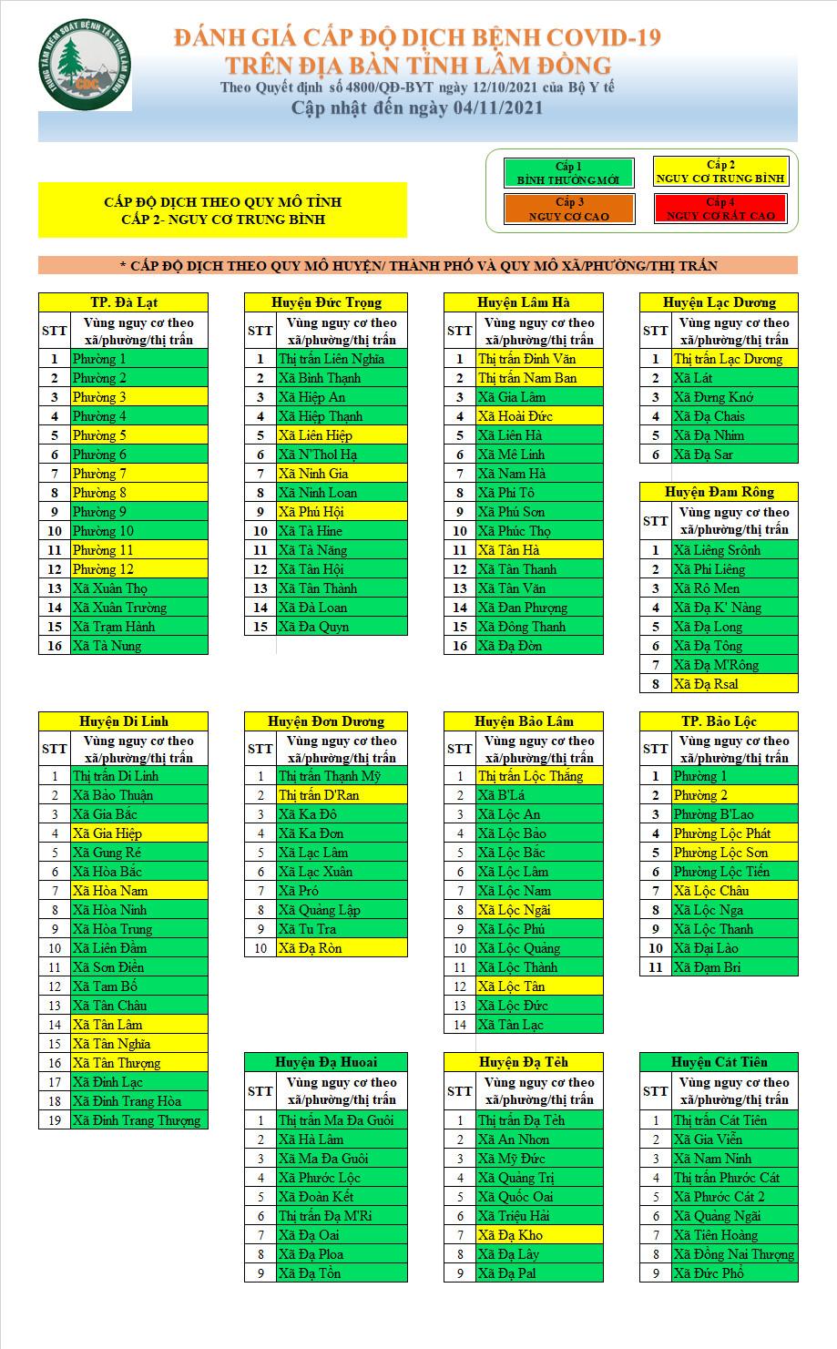 Đánh giá cấp độ dịch bệnh COVID-19 trên địa bàn tỉnh Lâm Đồng (cập nhật đến ngày 04/11/2021)