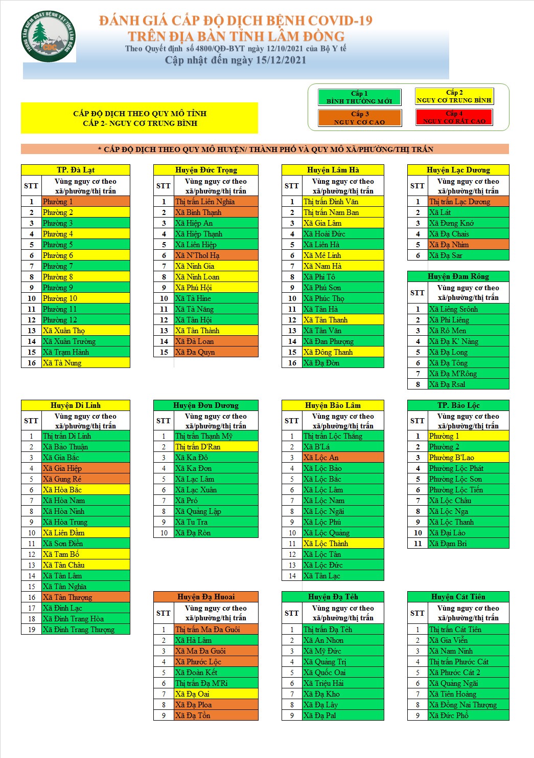 Đánh giá cấp độ dịch bệnh Covid - 19 trên địa bàn tỉnh Lâm Đồng - Cập nhật đến ngày 15/12/2021
