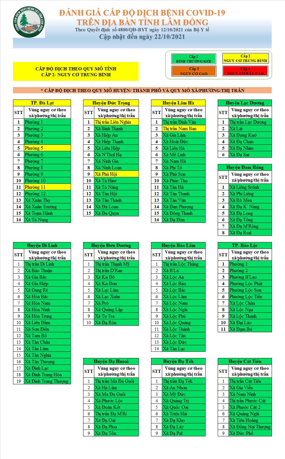 Đánh giá cấp độ dịch bệnh Covid-19 trên địa bàn tỉnh Lâm Đồng (cập nhật đến ngày 22/10/2021)
