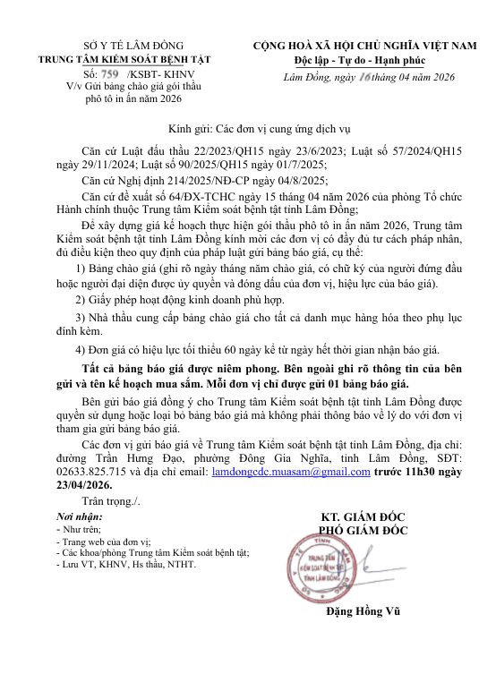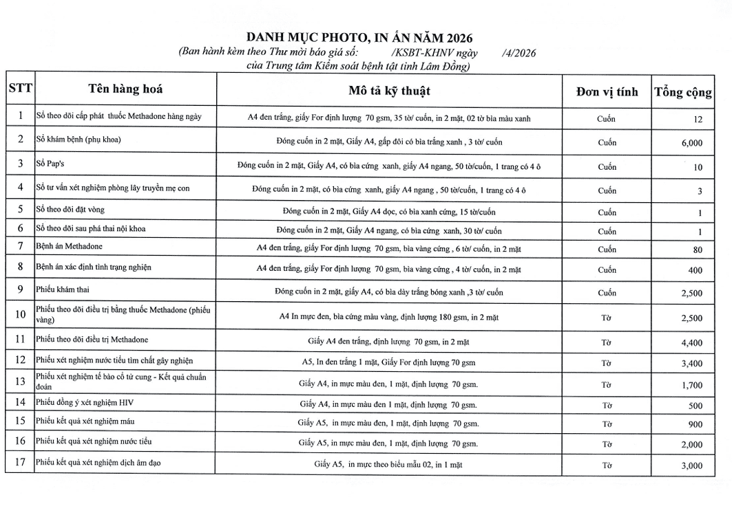 Gửi bảng chào giá gói thầu phô tô in ấn năm 2026 Ngày đăng: 16/04/2026 - 11:00 Chia sẻ: | In bài viết