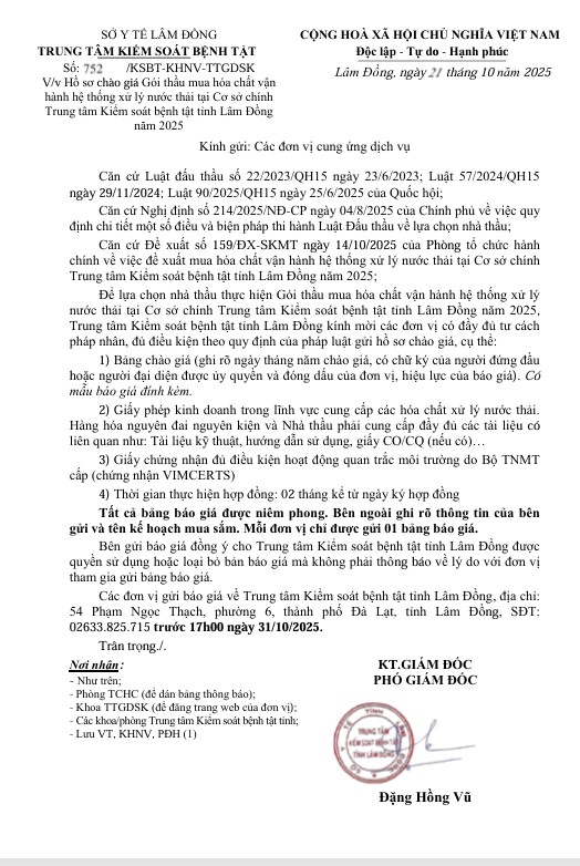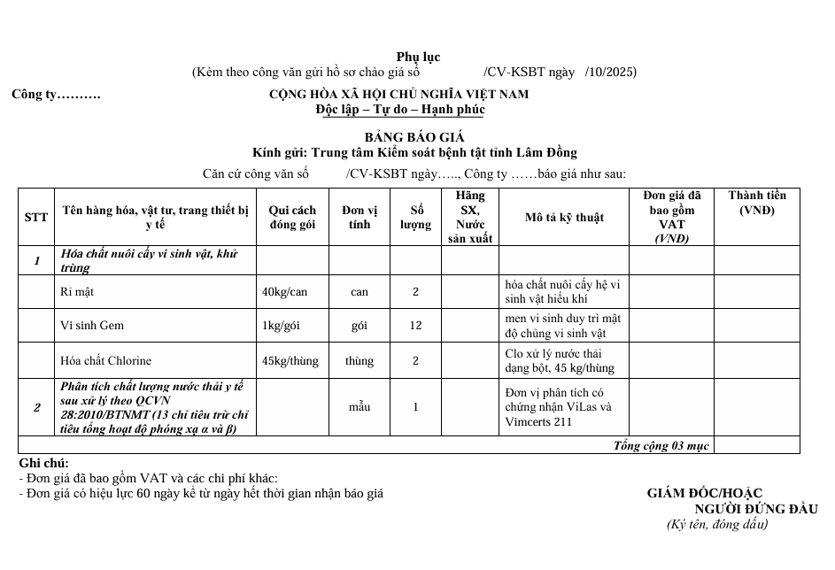 Kính gửi: Các đơn vị cung ứng dịch vụ