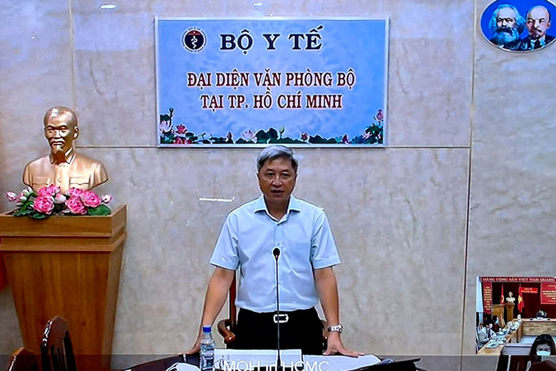 Thứ trưởng Bộ Y tế Nguyễn Trường Sơn phát biểu chỉ đạo tại Hội nghị trực tuyến đẩy nhanh tiến độ tiêm chủng chiến dịch mùa xuân.