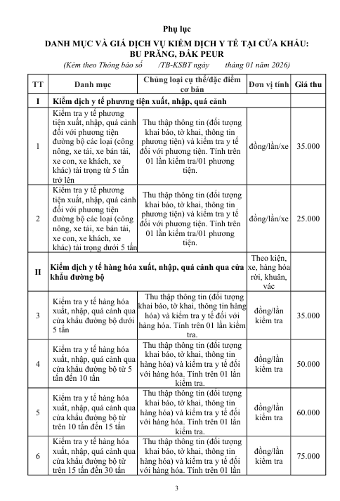 Thông báo Triển khai, thực hiện thu phí dịch vụ kiểm dịch Y tế biên giới tại các cửa khẩu  đường bộ (Bu Prăng, Đắk Peur) trên địa bàn tỉnh Lâm Đồng