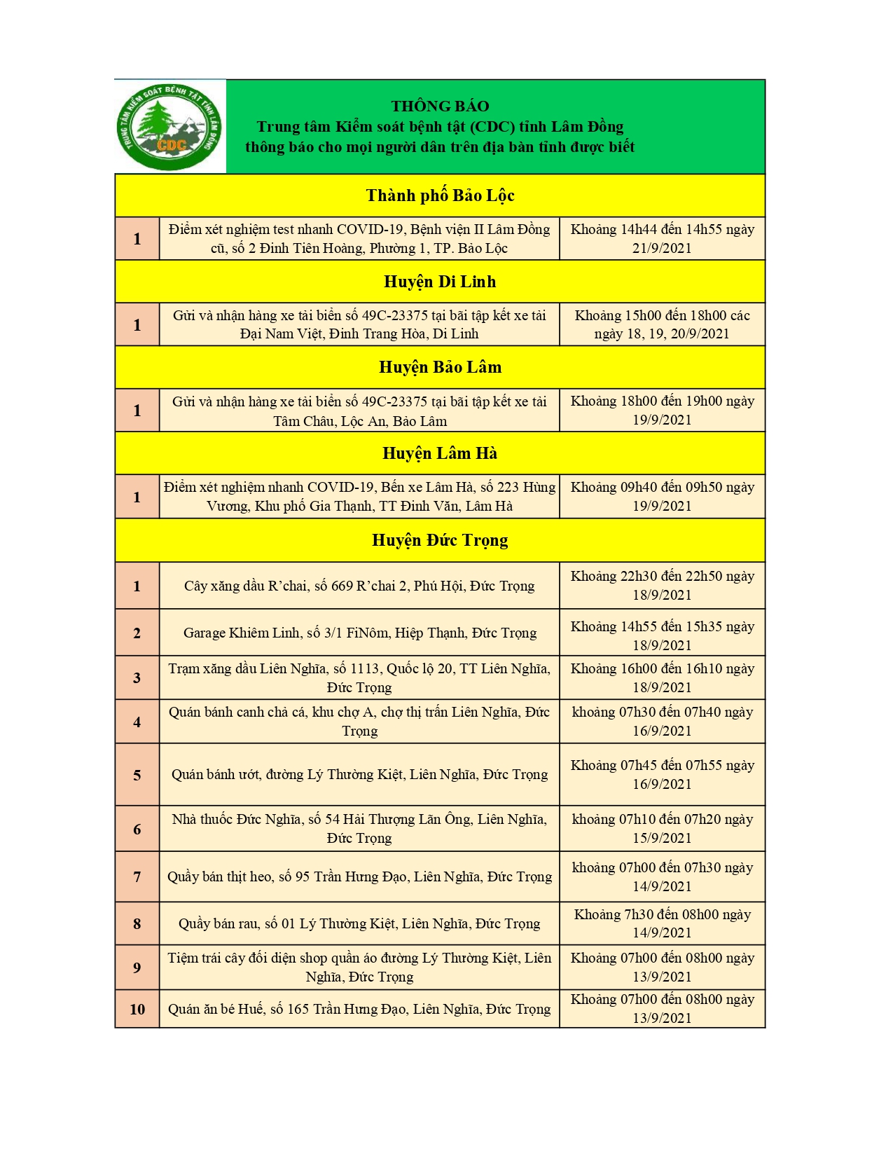 THÔNG BÁO Trung tâm Kiểm soát bệnh tật (CDC) tỉnh Lâm Đồng thông báo cho mọi người dân trên địa bàn tỉnh được biết