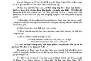 Cập nhật lúc: 11:10 - 18/10/2024 Thông báo gửi hồ sơ chứng minh năng lực thực hiện gói thầu cung ứng thuốc dược liệu, thuốc có kết hợp dược chất với các dược liệu, thuốc cổ truyền năm 2024 - 2025 (lần 2) | Giới thiệu