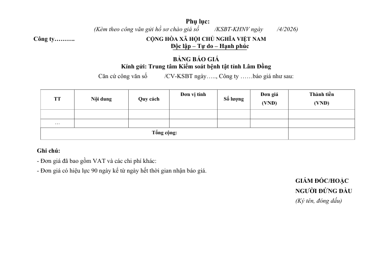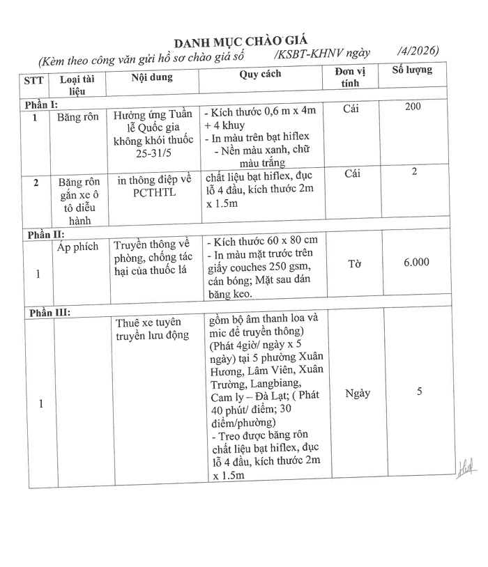 Gửi hồ sơ chào giá Gói thầu sản xuất tài liệu truyền thông, thuê xe tuyên truyền lưu động về phòng chống tác hại của thuốc lá năm 2026